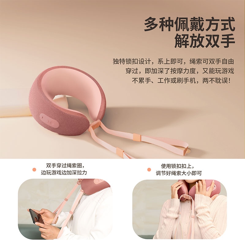 材质:瑜伽布料,回弹记忆棉 充电口:TypeC 产品尺寸:220*220*115mm 产品净重:500g 额定功率:3.7W 电池容量:1200mAh • 仿真人双头按摩手感 强电机高配 • 360°环颈支撑 高密度回弹记忆棉 • C口便携可充电 智能定时15分钟模式, • 恒温热敷功能可选 质保一年